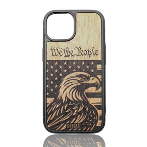 Carry the foundational words of freedom with "The Founding Father." This case blends the iconic "We The People" script with the stoic gaze of the American Bald Eagle, creating a masterpiece of handcrafted patriotism etched into real wood.