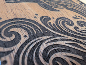 - Precision laser‑engraved dolphin and wave artwork with flowing linework