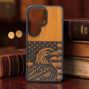 The Sovereign Sentinel | Eagle & American Flag | GR8CASE Wood Phone Case